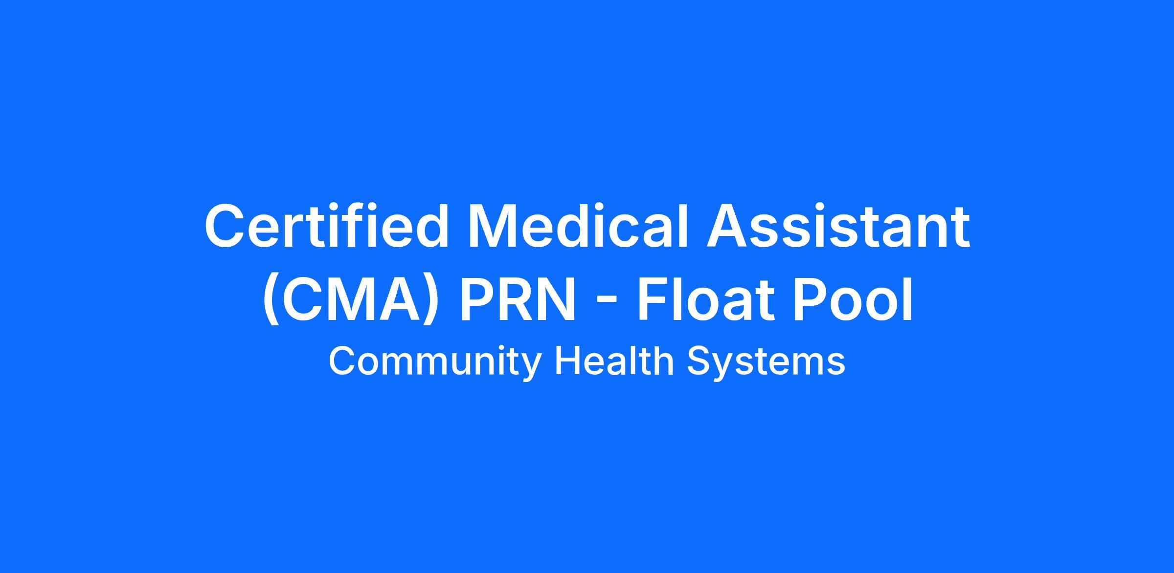 DescriptionAs a Certified Medical Assistant at Float Pool you’ll join a team and be a part of a culture that's dedicated to providing top quality care to our patients. Our full-time employees enjoy a robust benefits package which may include health insurance, 401(k), licensure/certification reimbursement, tuition reimbursement, and student loan assistance for eligible roles.