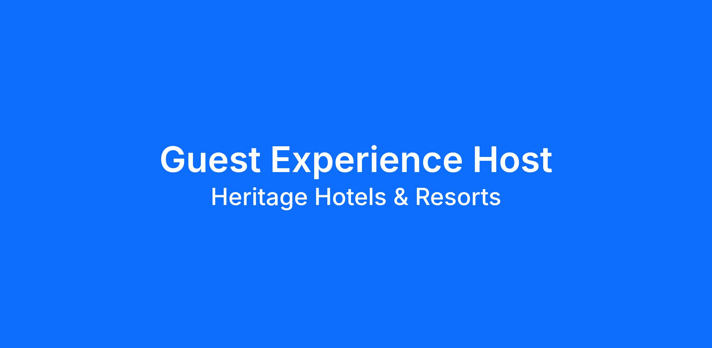 We are seeking a dedicated Guest Experience Host to join our team. In this role, you create meaningful, memorable and highly personalized guest experiences from arrival through departure. Your ability to deliver refined service, thoughtful storytelling and exceptional care ensures every guest feels welcomed, valued and deeply connected to the Heritage experience.