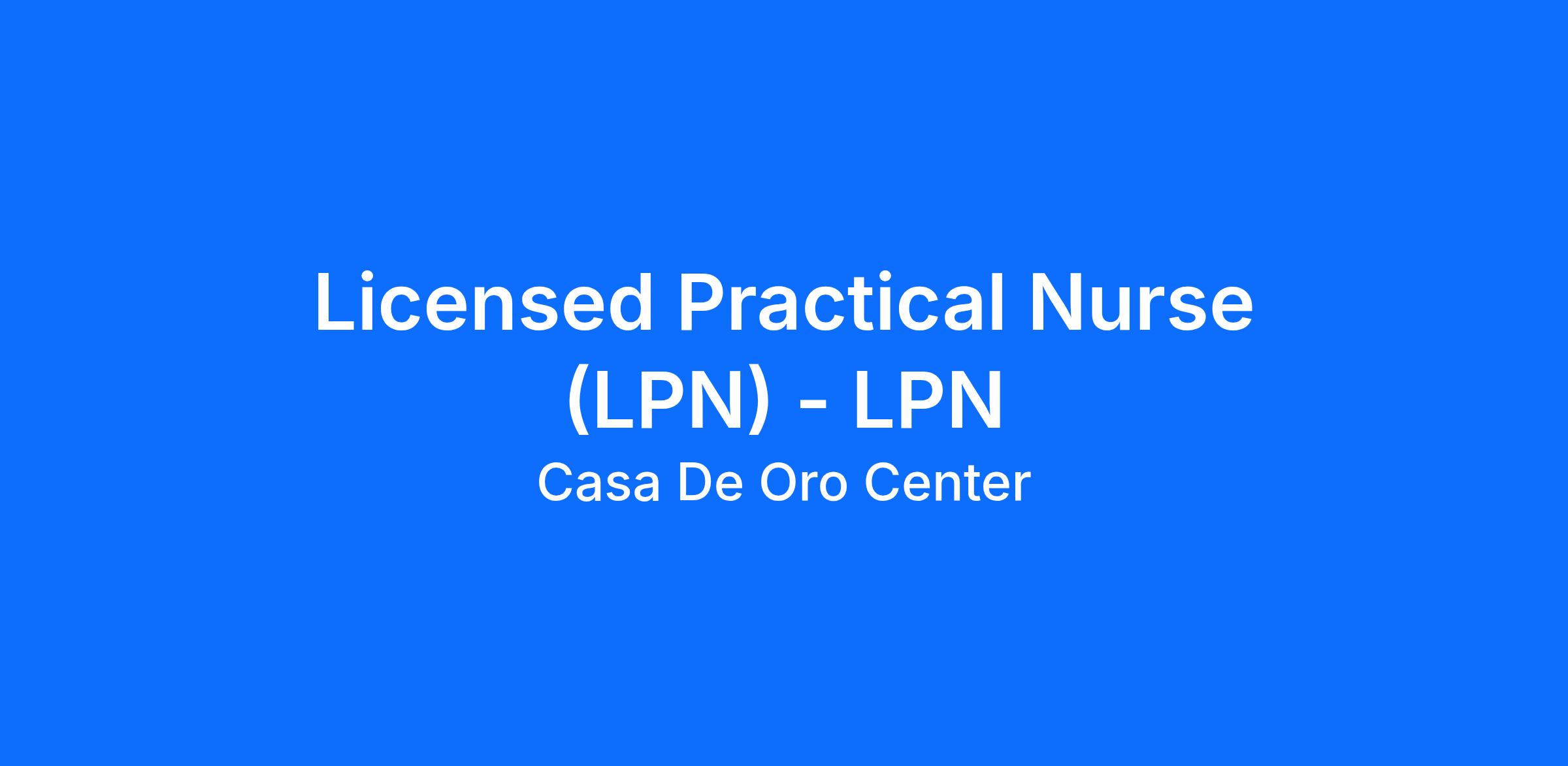 Licensed Practical Nurse (LPN) - LPN