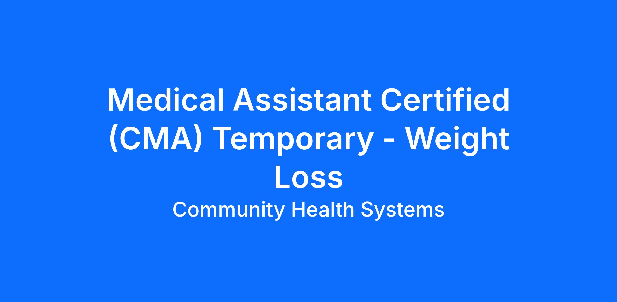 DescriptionAs a Certified Medical Assistant at MountainView Weight Loss you’ll join a team and be a part of a culture that's dedicated to providing top quality care to our patients. Our full-time employees enjoy a robust benefits package which may include health insurance, 401(k), licensure/certification reimbursement, tuition reimbursement, and student loan assistance for eligible roles.