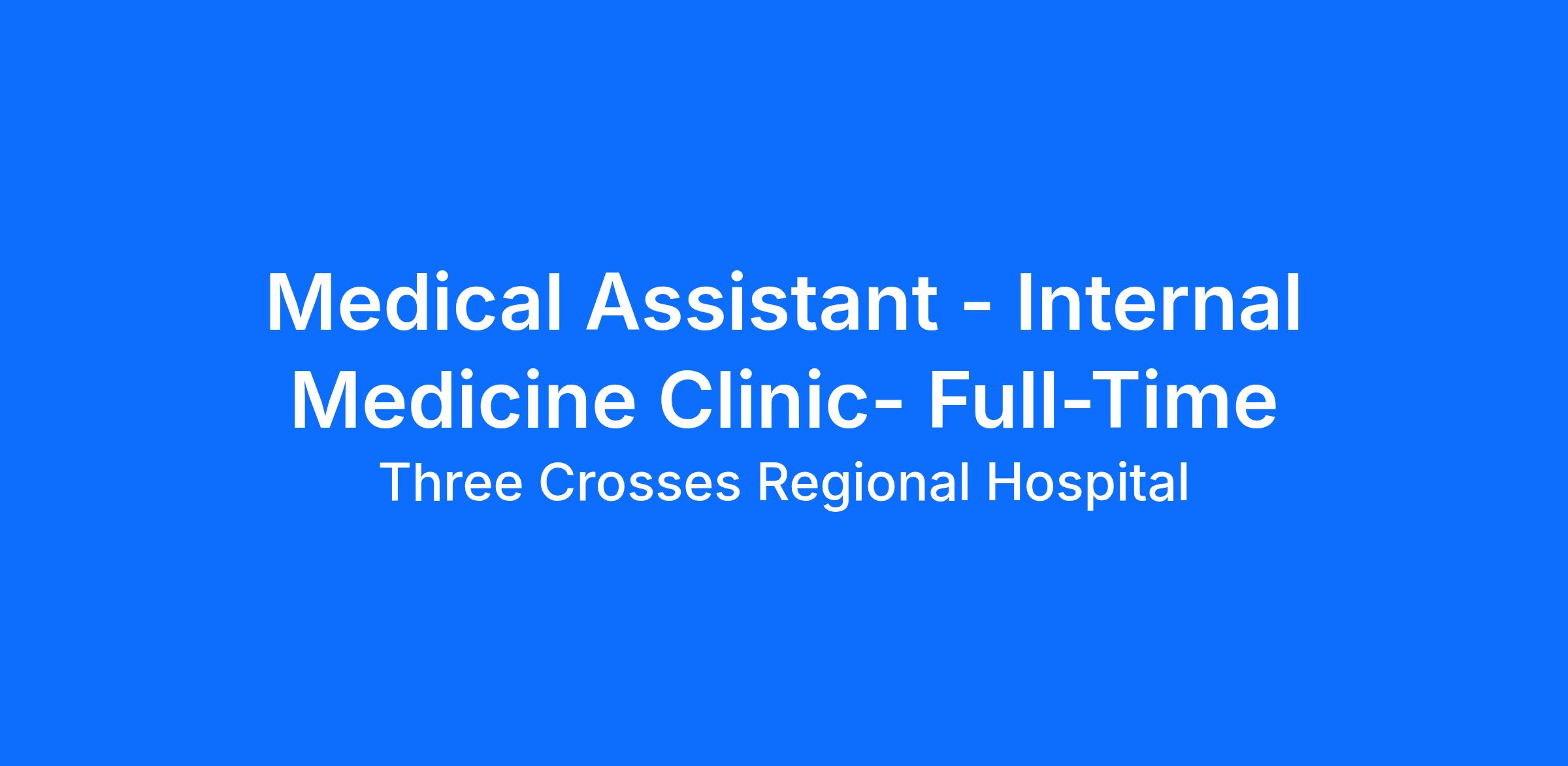 If you're looking for a place to call home and grow, Three Crosses Regional Hospital is looking for you! We are looking for a Medical Assistant for our Internal Medicine Clinic that is committed to clinical excellence and building a patient-centered culture.