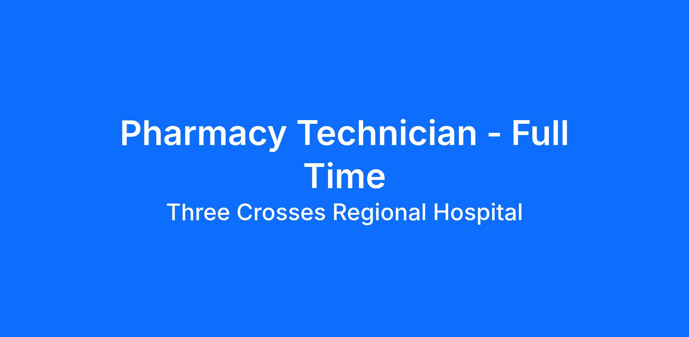 If you're looking for a place to call home and grow, Three Crosses Regional Hospital is looking for you! We are looking for a Pharmacy Technician that is committed to clinical excellence and building a patient-centered culture.