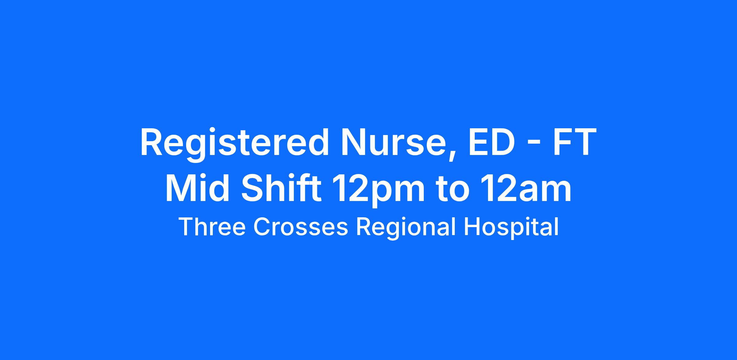 If you're looking for a place to call home and grow, Three Crosses Regional Hospital is looking for you! We are looking for a Registered Nurse to join our Emergency Department team that is committed to clinical excellence and building a patient-centered culture.