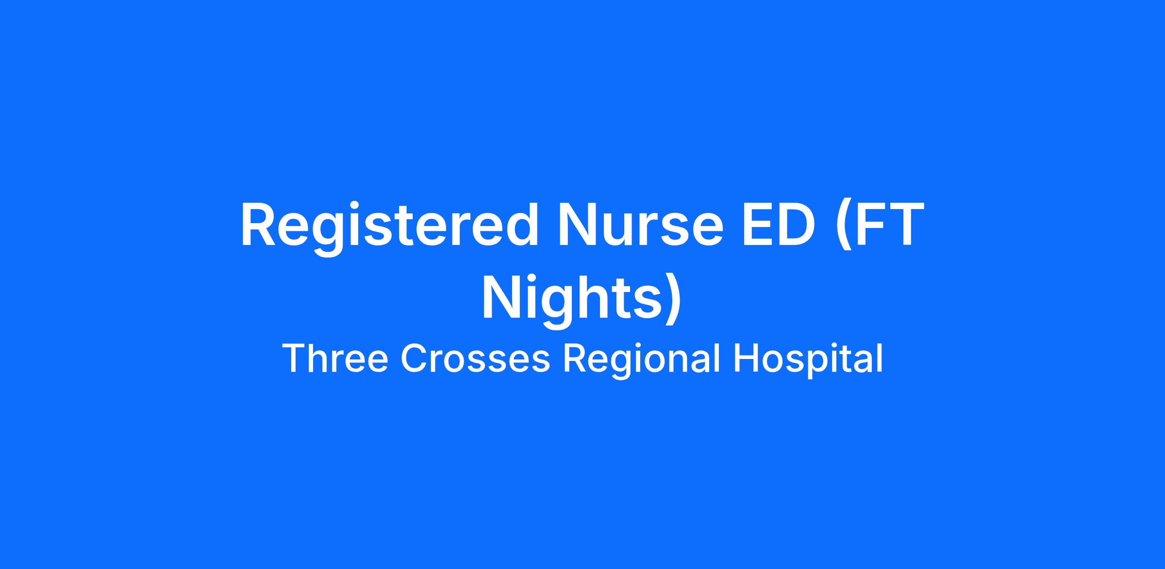 If you're looking for a place to call home and grow, Three Crosses Regional Hospital is looking for you! We are looking for a Registered Nurse to join our Emergency Room Team that is committed to clinical excellence and building a patient-centered culture.