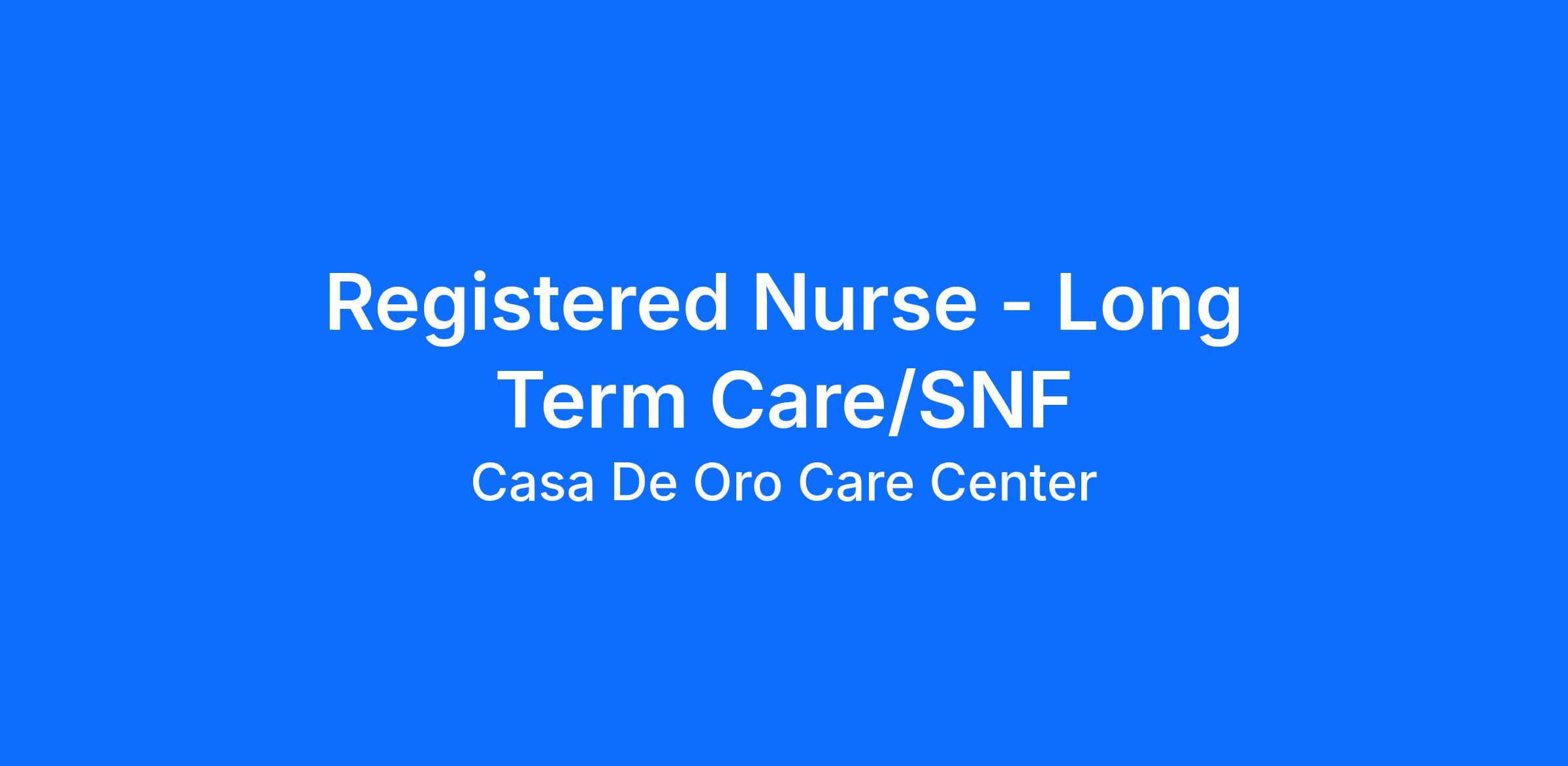 Registered Nurse - Long Term Care/SNF