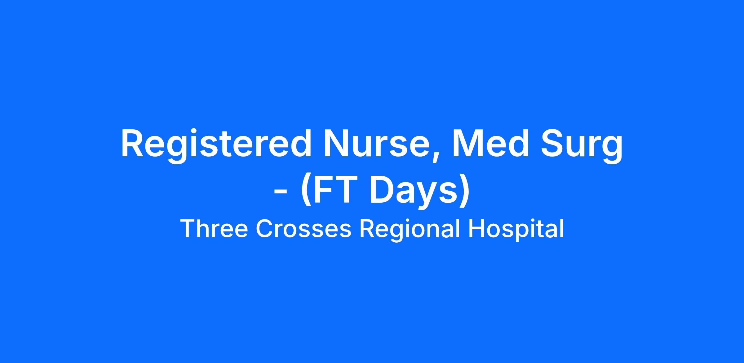 If you're looking for a place to call home and grow, Three Crosses Regional Hospital is looking for you! We are looking for a Registered Nurse to join our Med Surg Team that is committed to clinical excellence and building a patient-centered culture.