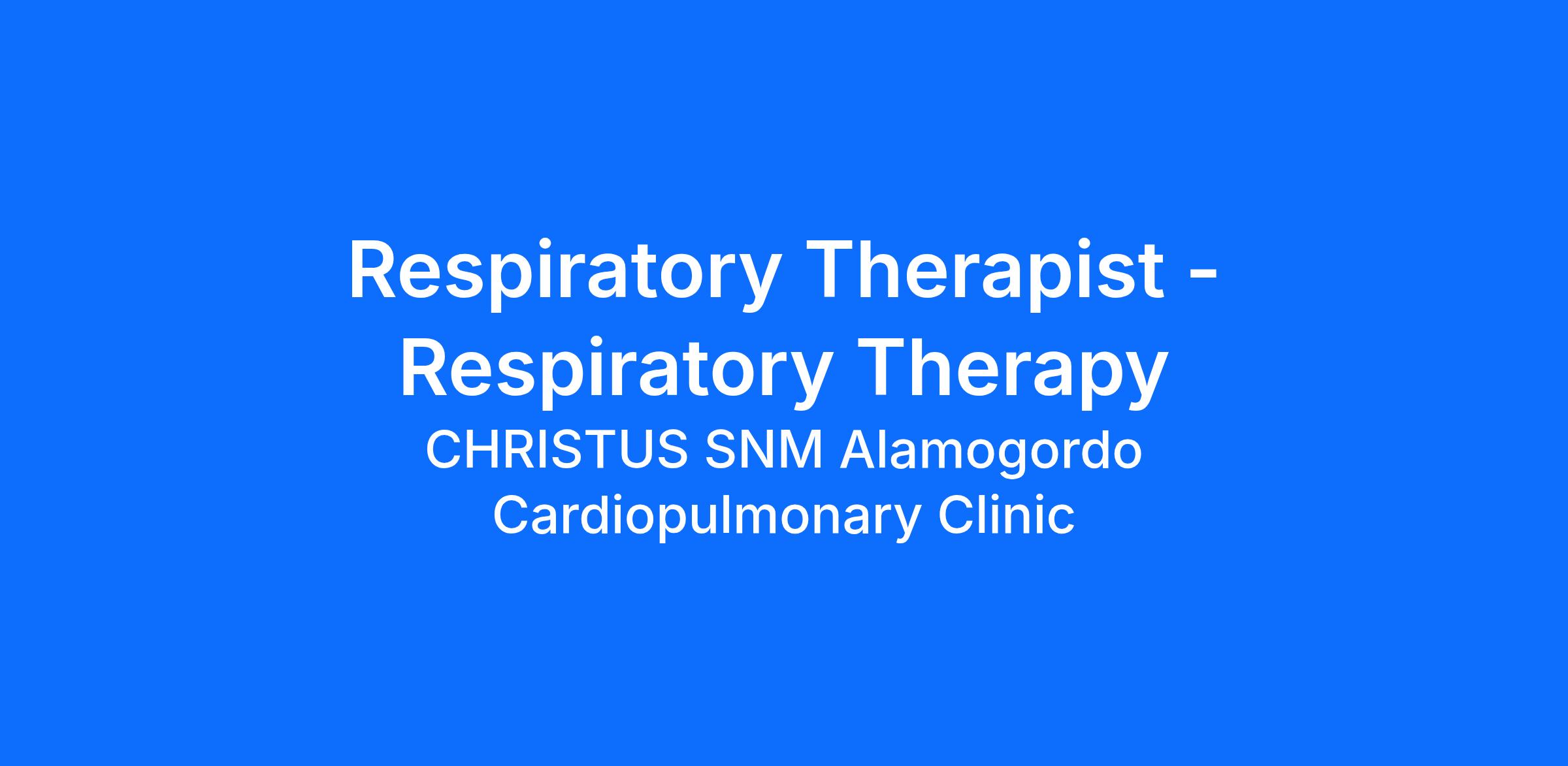 Assured Nursing is currently seeking a Respiratory Therapist for a contract position in Alamogordo New Mexico. This is a 7p-7:30a, 19:00:00-07:30:00, 12.00-3 position in the CHRISTUS Health (516). The ideal candidate will possess a current state license as a Respiratory Therapist and have at least 2 years of recent experience as a Respiratory Therapy Respiratory Therapist.