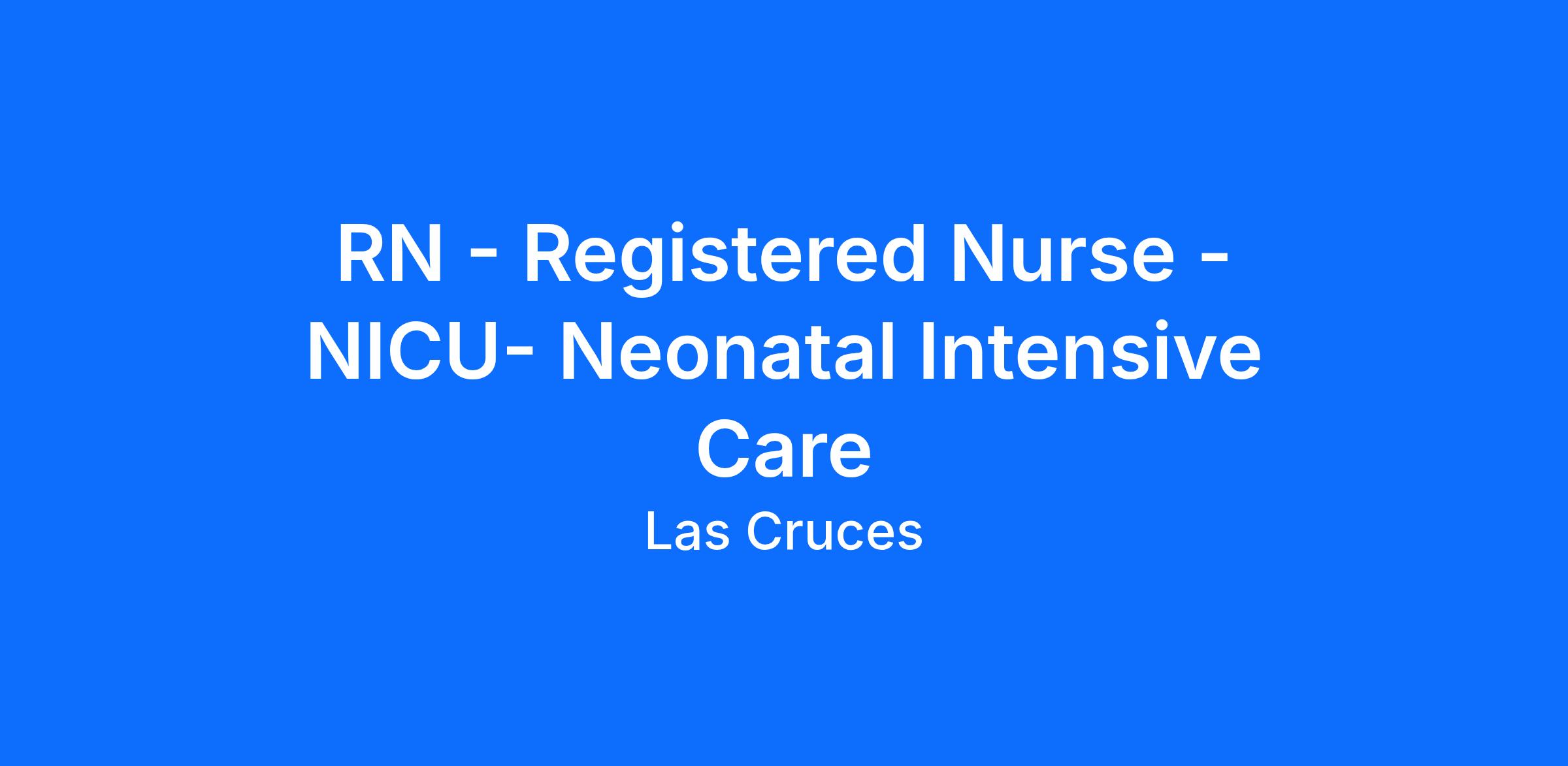 RN - Registered Nurse - NICU- Neonatal Intensive Care