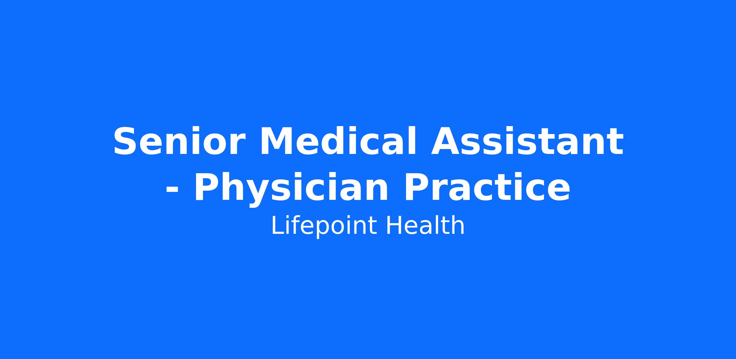 Senior Medical Assistant - Physician Practice